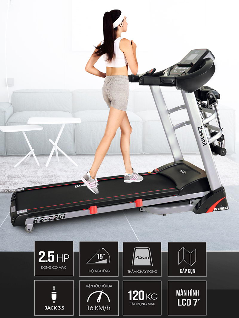 Trong thời đại công nghiệp 4.0 máy chạy bộ tại nhà được xem là thiết bị hữu ích giúp tăng cường sức khỏe và sự minh mẫn cho người sử dụng. Đặc biệt là những máy chạy đa năng, tiện ích như Zasami KZ-C201.