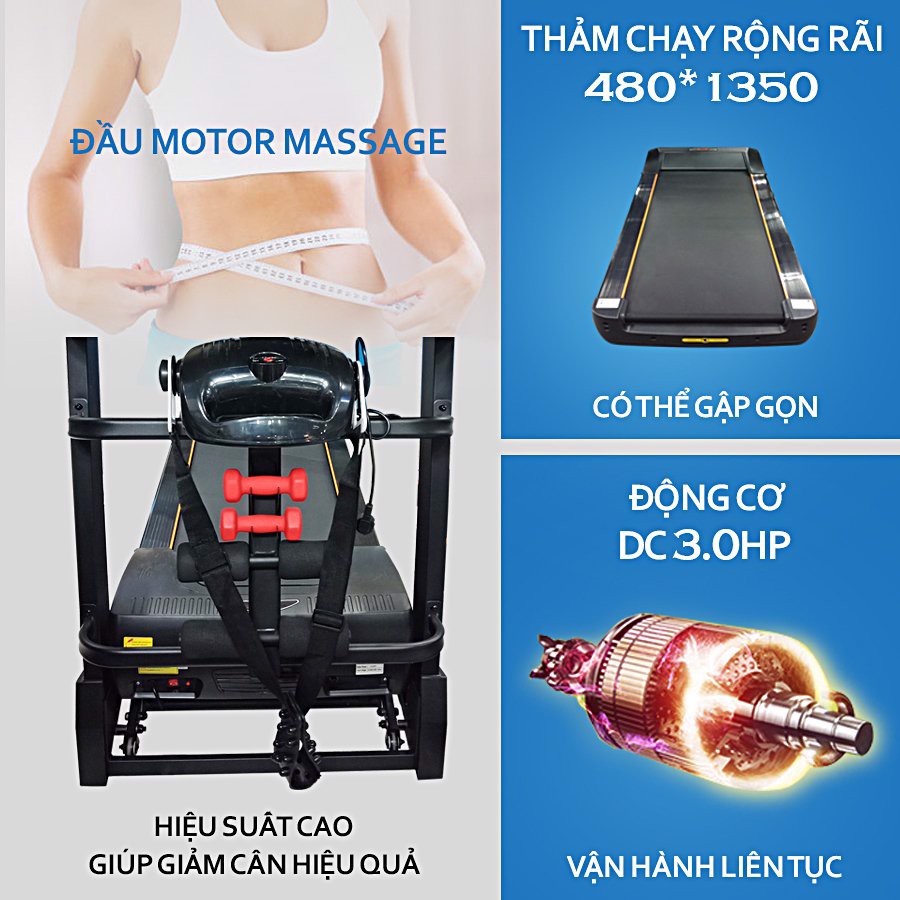 Ngoài ra, Máy chạy bộ DL-791ADS-1 còn được trang bị đầy đủ các tính năng tập luyện hỗ trợ giảm cân/ giảm mỡ như thanh gập bụng, tạ tập tay, đai massage giúp người tập thuận tiện kết hợp bổ sung các bài tập toàn thân đem đến một thân hình chắc khỏe, thon gọn cho người dùng một cách nhanh chóng.
